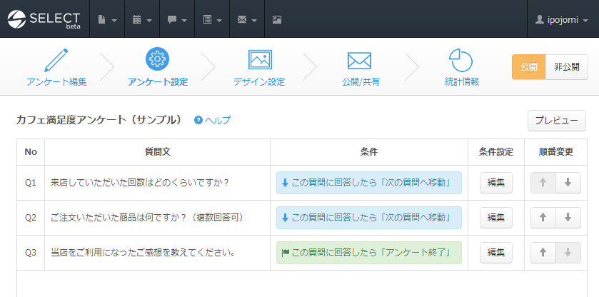 「テキスト選択形式」「画像選択形式」「マトリクス形式」「自由記述式」SelectTypeなら多彩なアンケートの質問形式が用意されているので、色々な質問に対応可能です。