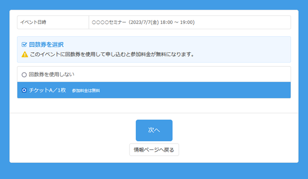 この回数券・チケット機能をイベント参加申込受付にもご活用いただくことが可能です。