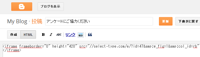 ※ iframeタグが使用できないブログではアンケートが取り込めない場合もあります。