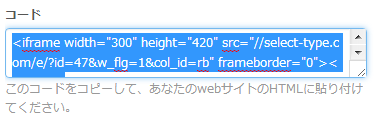 SelectTypeで作成したアンケートや診断テストはブログやホームページに埋め込むことが出来ます。