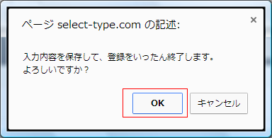 仮保存ボタンをクリックすると確認ダイアログが表示されます。