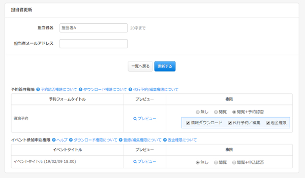 SelectTypeの予約システムでは宿泊予約の受付・管理業務を「担当者機能」によって分担出来ます。