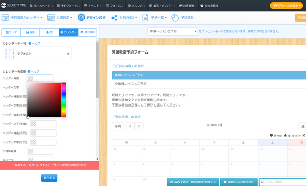 SelectTypeの予約システムの大きな特徴の一つはその高度なデザイン設定機能です。