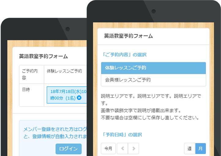 一方、現会員様向けにメンバーログインが必要な予約カレンダー・予約フォームを作成することも可能です。