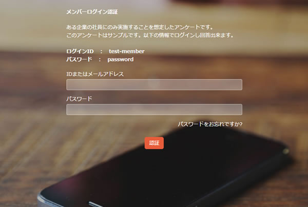 メンバー認証方式によるアンケートの公開・実施が可能です。