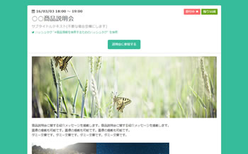 商品/製品の紹介セミナーや説明会を開催する際に、告知宣伝用のWEBページとそのセミナー/説明会/発表会や展示会への参加申込フォームが一体型で作成出来ます。