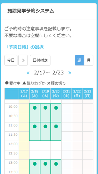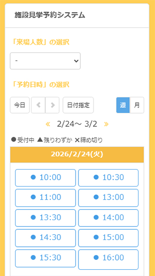 見学予約を「開始時間ごとの人数制限」で管理している施設は少なくありません。