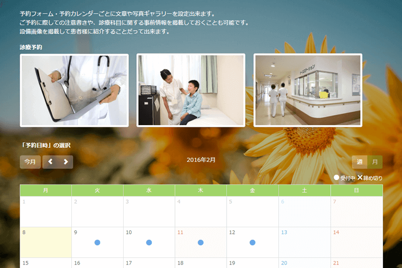 予約フォーム・予約カレンダーごとに文章や写真ギャラリーを設定出来ます。