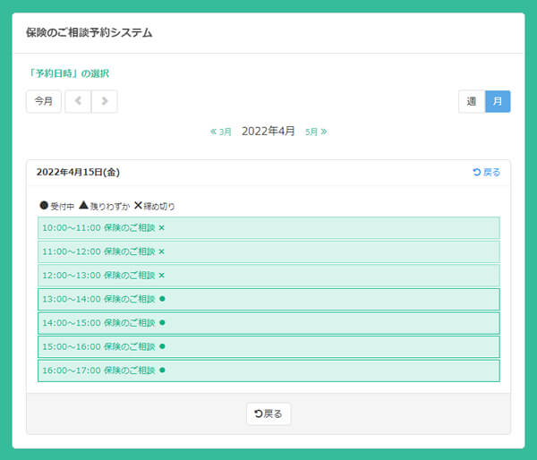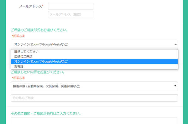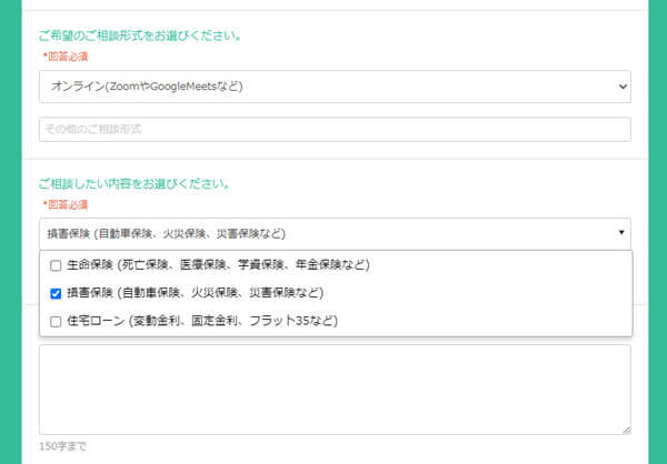 お客様から保険全般のご相談を受け付けるWEB予約システム