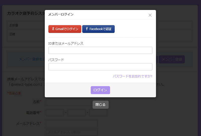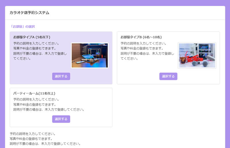 カラオケルーム・カラオケボックスの予約システム
