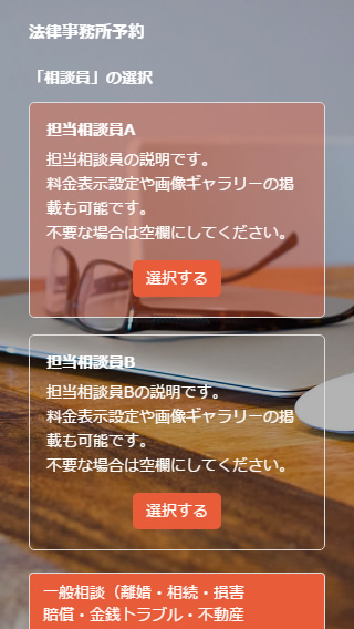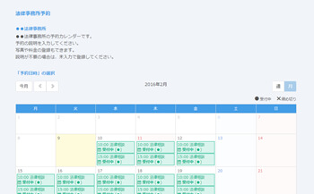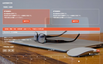 法律関連の種々のカウンセリング/相談をネットでご予約受付できる予約システムです。