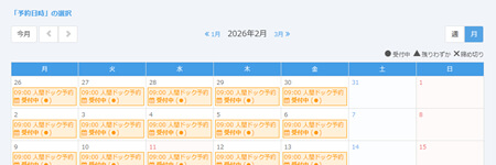 午前・午後、検査内容ごとの予約枠を月別カレンダーで一元管理できます。