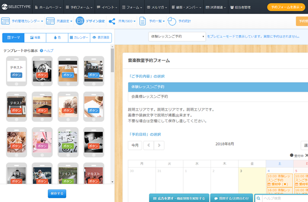 SelectTypeの予約システムの大きな特色の一つは、その柔軟・高度なデザイン設定機能です。
