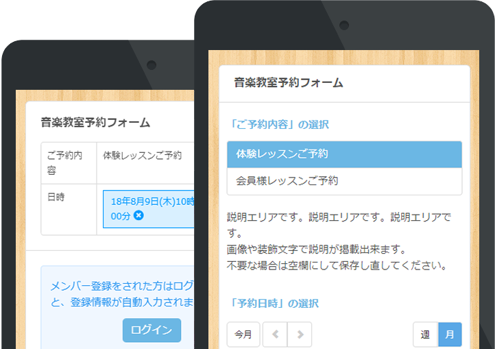 簡単で高機能・オリジナルデザインの予約フォームが作れる予約システムです。