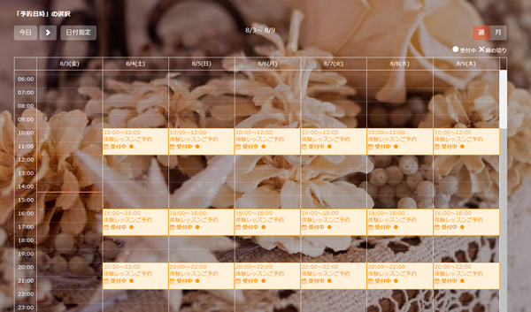 前述の体験教室のようなオープンな予約カレンダーと同居させることも可能ですので、カレンダーの用途に併せて設定をご調整ください。
