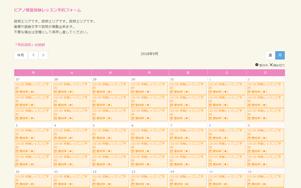 あなたの教室にマッチしたご満足いただける予約カレンダー・予約フォームが作成出来ることでしょう。