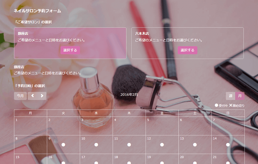 SelectTypeの予約システムなら、ネイリストごとに予約フォーム(予約カレンダー)が作れます。