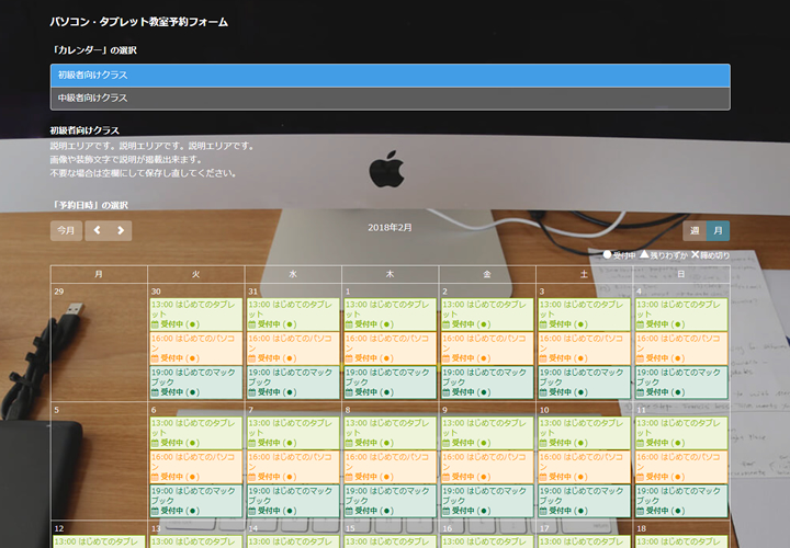 パソコン教室・スマートフォン教室のご予約受付に「お電話でのご予約受付のみ」ではちょっと格好がつきません。