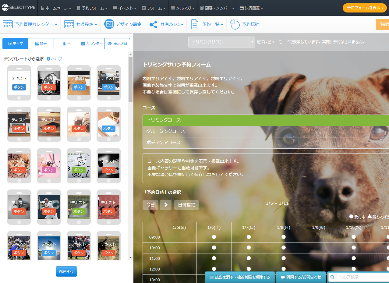 SelectTypeでは予約フォームのデザインテーマを豊富に揃えています。