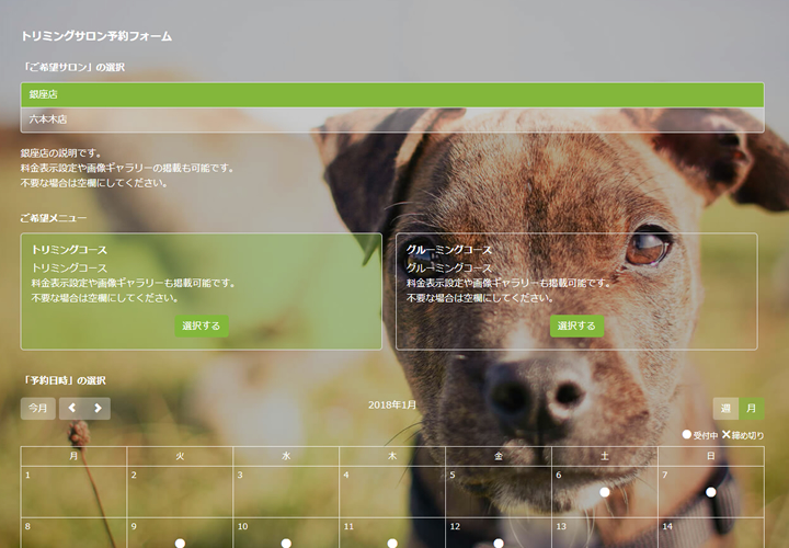 ペットサロン・トリミングサロンのインターネット予約受付が簡単に始められます。