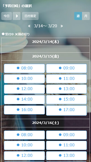 特に意識することなくお客様は予約フォームにアクセスしてご予約を進めることが可能です。SelectType側でお客様のアクセス機器を判断し、スマホ用カレンダー/PC用カレンダーを自動的に表示します。
