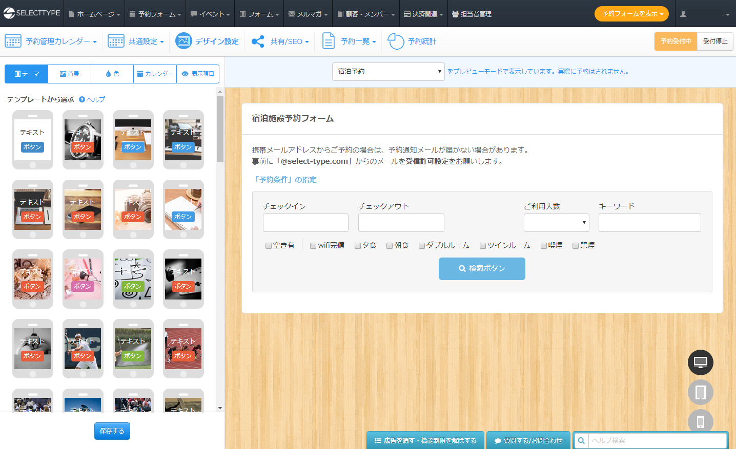 SelectTypeの予約システムは予約フォームの柔軟なデザイン設定機能、豊富に写真掲載出来る画像ギャラリー機能をご用意しています。