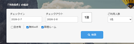 - 人数・日程で簡単検索予約