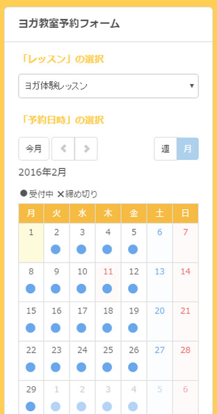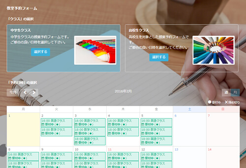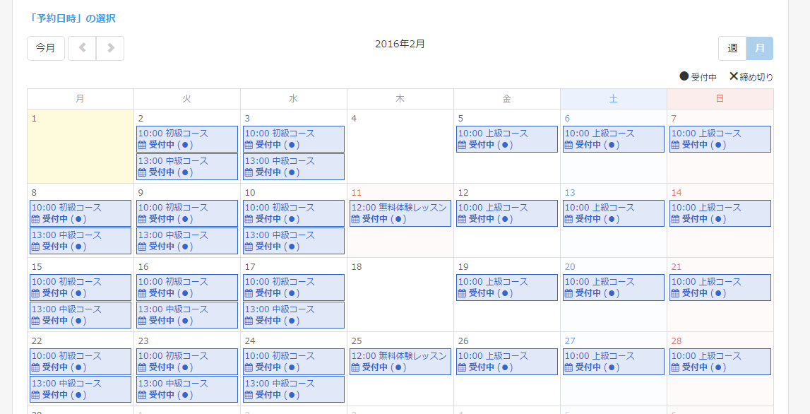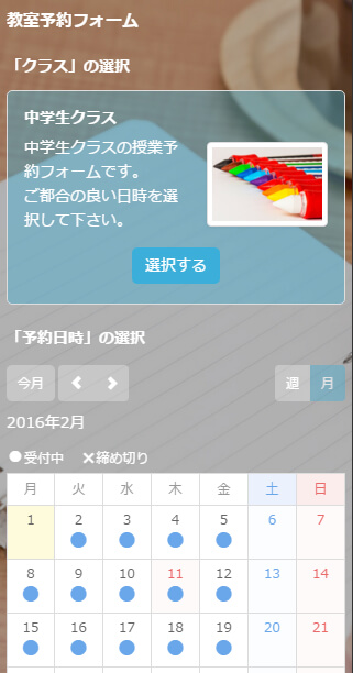 定期的な授業の予約だけでなく、体験レッスンや1DAYレッスンなどのお申し込みなど授業の形式に合わせたスケジュールで、予約フォームからのネット予約受付が可能になります。