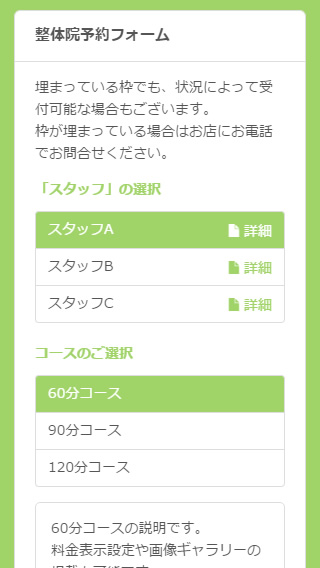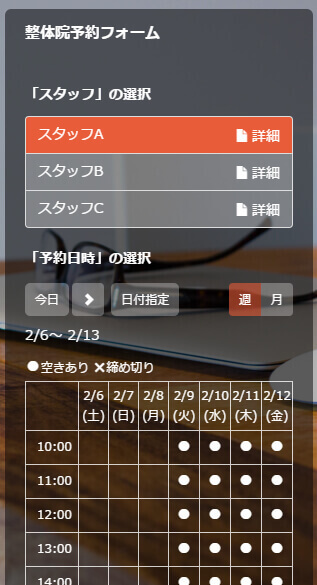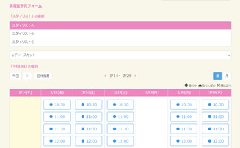 ご予約時にお客様がスタッフを指名出来る、スタッフ選択タイプの予約フォームが作成可能