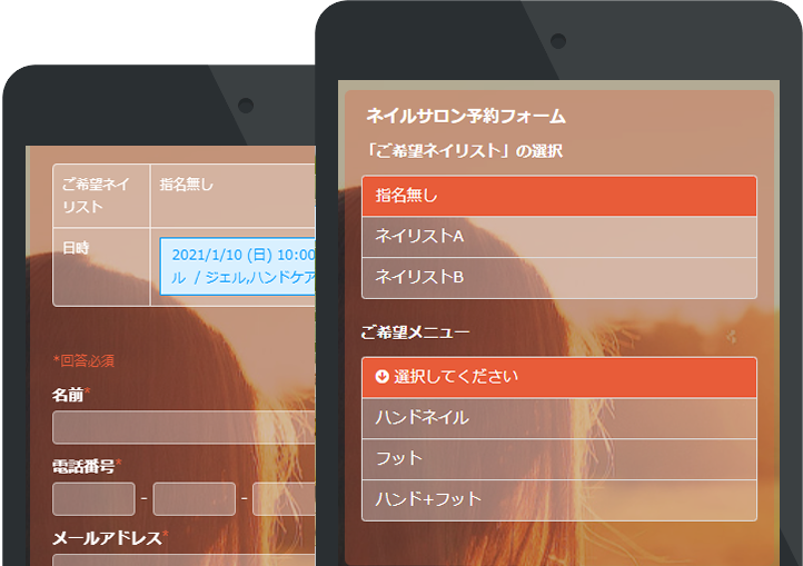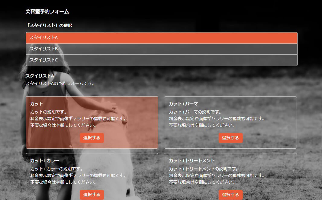美容院・ヘアサロン・ネイルサロン・整体院など、お客様がサービスを受けるスタッフを指名したい業種に対応した予約フォームが作成出来ます。