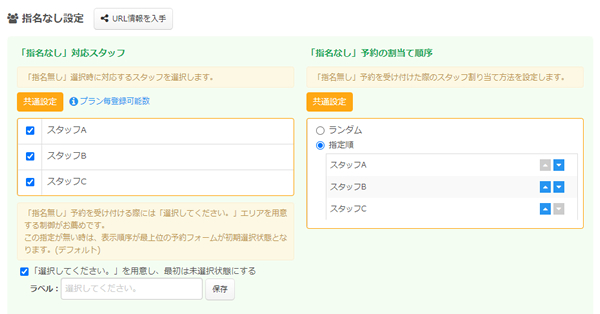 指名無しの予約受付とスタッフ指名をお客様にお選びいただける予約システム