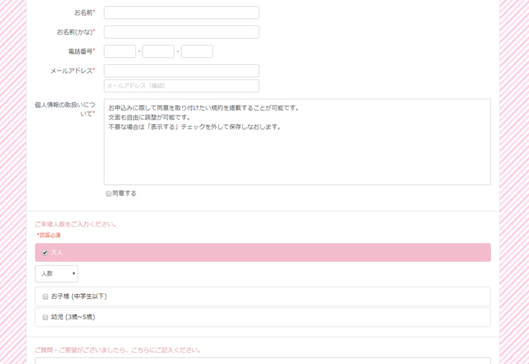 農園にいらっしゃるお客様の人数や内訳を詳細に事前ヒアリングすることはもちろんご予約と一緒に事前アンケートを実施することも簡単に実現出来ます。