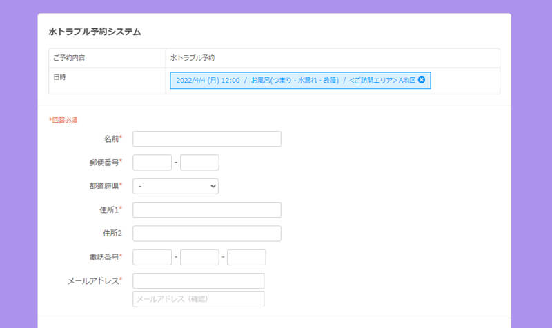 水道修理・水まわりのトラブルサービスの予約システム
