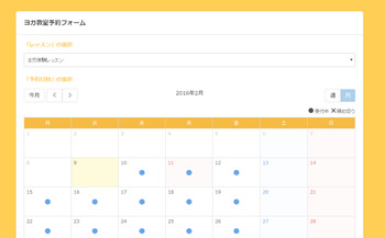 クラスのスケジュールを登録すれば、ご予約カレンダーに自動表示されネット予約受付が開始されます。